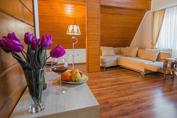 Площадь номера: 86 кв.мДвухуровневый номерВ номере: душ, таулет, фен,ТВ, мини-холодильник, набор посуды, электрочайник, кондиционер, сейф, wi-fi, двуспальная кровать, диван, балконДоп. место-диван