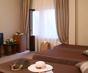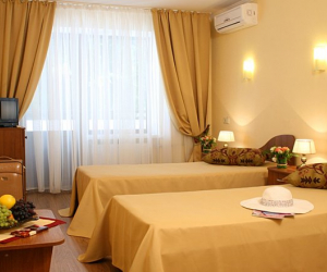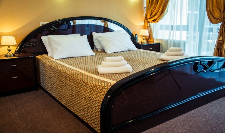 В номере: вешалка, диван раскладной, зеркало, кресло, кровать двуспальная, набор мягкой мебели, обувная полка, прикроватная тумбочка, столик журнальный, стулья, шкаф, кондиционер, сейф, телевизор, холодильник, электрочайник, ванна, тапочки, туалетные принадлежности, халат, Wi-Fi бесплатно, смена полотенец ежедневно, смена постельного белья 1 раз в 3 дня, уборка номера ежедневно
