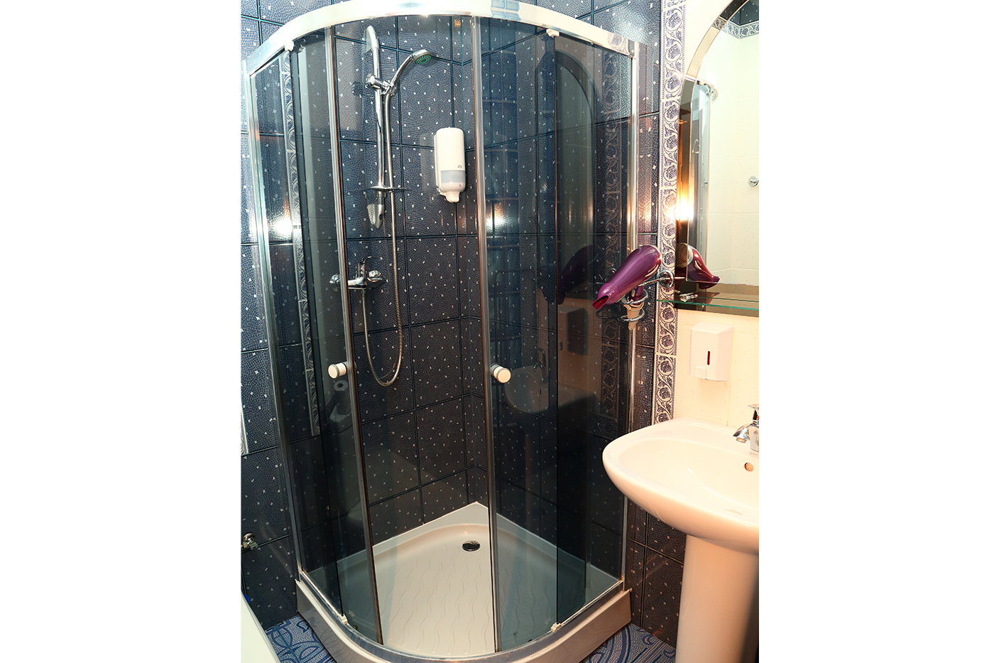Площадь номера: 20-25 кв. мВ номере: 2 кровати (ширина 1,1 м), шкаф-купе с зеркалом, кресло-кровать, журнальный столик, прикроватные тумбочки, совмещенный санузел с душевой кабиной, фен