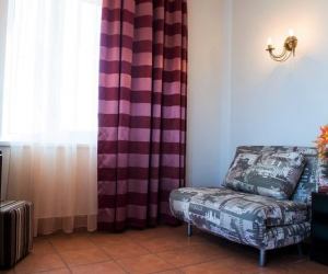 -в номере: вешалка, зеркало, кресло-кровать, кровать двуспальная, прикроватные тумбочки, пуфик,