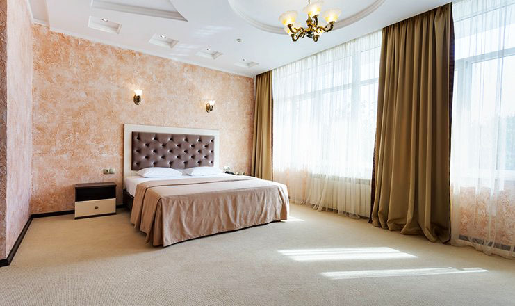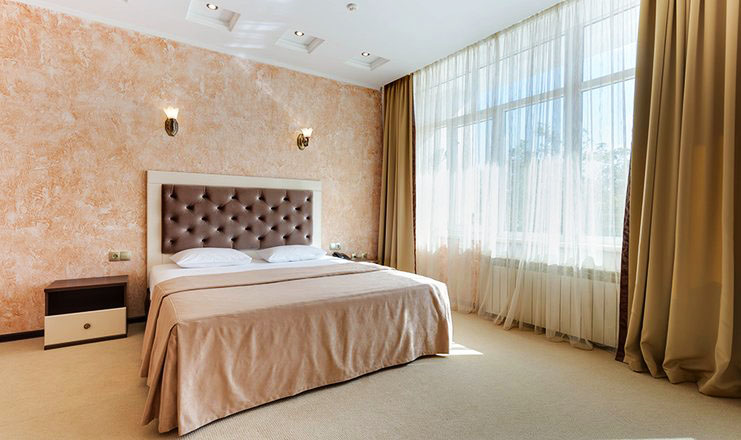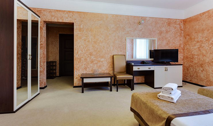 -в номере: зеркало, кресло 2, кровать двуспальная, прикроватные тумбочки, столик журнальный,