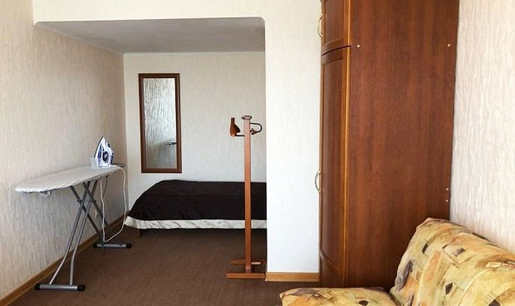 -в номере: вешалка, диван, зеркало, кровати односпальные /одна двуспальная кровать, обувная полка, прикроватные тумбочки,