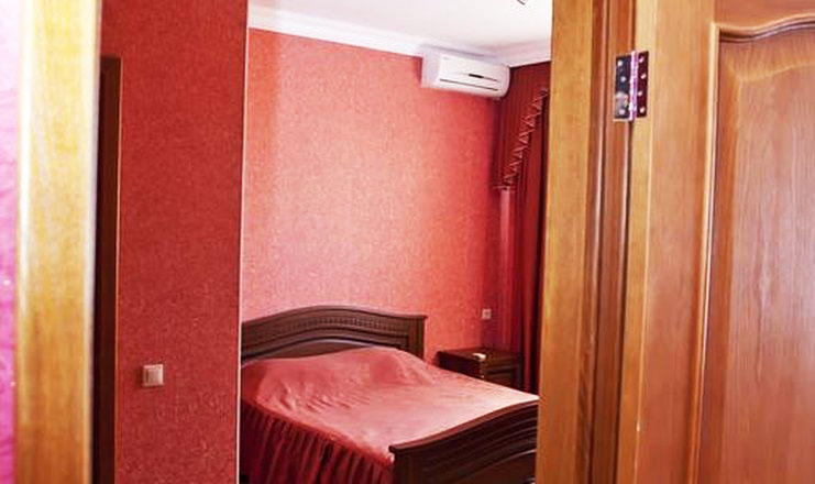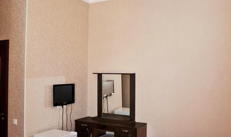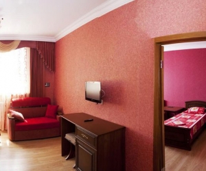 -в номере: вешалка, зеркало, кровать двуспальная, прикроватные тумбочки, столик журнальный,