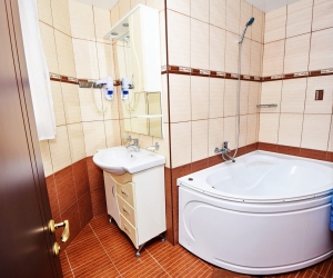 В ванной: ванна или душ, туалет, раковина, фен, набор полотенец, средства личной гигиены.