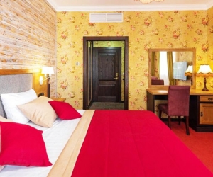 -в номере: вешалка, зеркало, кровати односпальные /одна двуспальная кровать, прикроватные тумбочки, стол, стул,