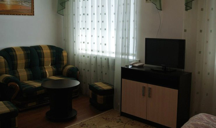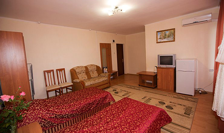-в номере: диван, кровати односпальные, набор мягкой мебели, прикроватные тумбочки, стулья, шкаф, кондиционер, набор посуды, телевизор, холодильник, электрочайник;