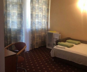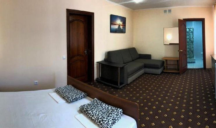-в номере: вешалка, зеркало, кровать двуспальная, кровать двуспальная/ две полутороспальные кровати, кровать односпальная 3, прикроватные тумбочки, шкаф, кондиционер, набор посуды, телевизор, холодильник;