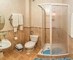 -в ванной комнате: душ, туалетные принадлежности, фен;