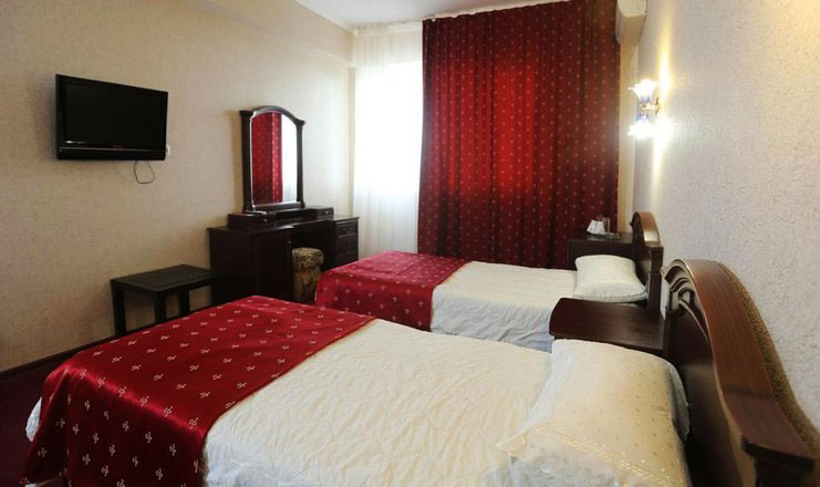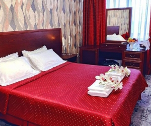 -в номере: вешалка, диван, зеркало, кресло-кровать, кровать двуспальная, прикроватные тумбочки, стол, стул, шкаф-купе, кондиционер, мини-холодильник, набор посуды