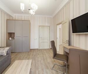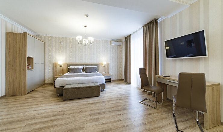 В номере: кровати односпальные /одна двуспальная кровать, столик журнальный, столик туалетный, стул, шкаф, гладильная доска, мини-холодильник, набор посуды, сейф, сплит-система, телевизор ЖК, чайная станция, ванна или душевая кабина, тапочки, туалетные принадлежности, фен, халат;