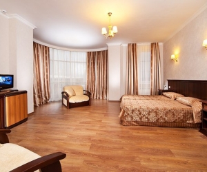 В номере: вешалка, диван раскладной, зеркало, кресло, кровати односпальные/одна двуспальная, прикроватные тумбочки, стол, стулья, шкаф, микроволновая печь, набор посуды, сейф, система общего кондиционирования, телевизор, холодильник, ванна, тапочки, туалетные принадлежности, фен, халат;