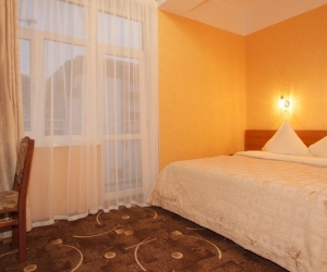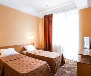 В номере: вешалка, зеркало, кровати односпальные, кровать двуспальная, обувная полка, прикроватные тумбочки, столик журнальный, столик туалетный, стулья, тумба под телевизор, шкаф, кондиционер, набор посуды, телевизор, холодильник, чайный набор посуды, ванна, туалетные принадлежности
