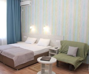 В номере: зеркало, кровать двуспальная/ две полутороспальные кровати, прикроватные тумбочки, стол, стулья, шкаф, набор посуды, сплит-система, телевизор, холодильник, электрочайник, ванна, туалетные принадлежности, фен;