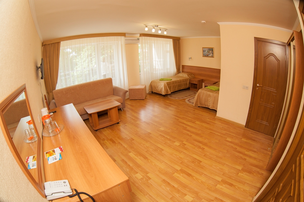 Санаторно-курортный комплекс включает в себя 7 жилых корпусов, с фондом комфортабельных номеров общей вместимостью 1000 человек.
