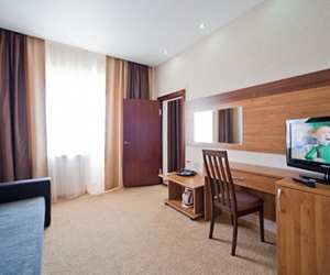 В номере: вешалка, диван, зеркало, кровать полутороспальная: 2 (с возможностью соединения — надевается специальный 2-х спальный чехол на сдвинутые кровати), стол, столик журнальный, стул, тумба под телевизор, мини-холодильник, сплит-система, телевизор, душевая кабина, тапочки, туалетные принадлежности, фен, халат;