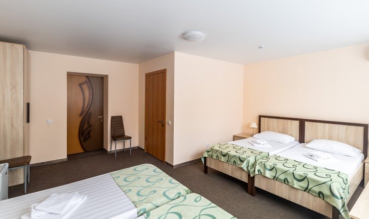 В номере: вешалка, зеркало, кровати односпальные или одна двуспальная кровать и одна односпальная кровать, прикроватные тумбочки, стол, стулья, шкаф, сплит-система, телевизор, холодильник, душ, туалетные принадлежности, фен;Доп. место: еврораскладушка