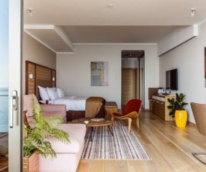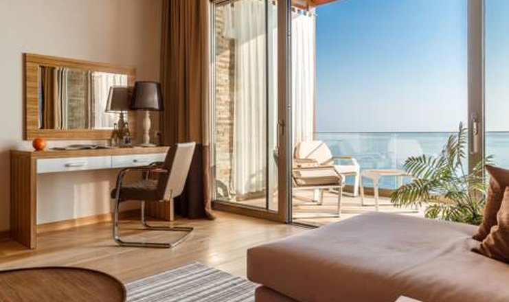 В номере: диван, зеркало, кровати односпальные /одна двуспальная кровать, прикроватные тумбочки, столик журнальный, столик туалетный, стул, тумба багажная, шкаф, кофемашина, мини-холодильник, набор посуды, пляжные полотенца, сейф, телевизор ЖК, центральная система охлаждения, чайный набор посуды, электрочайник, душевая кабина, тапочки, туалетные принадлежности, фен, халат;