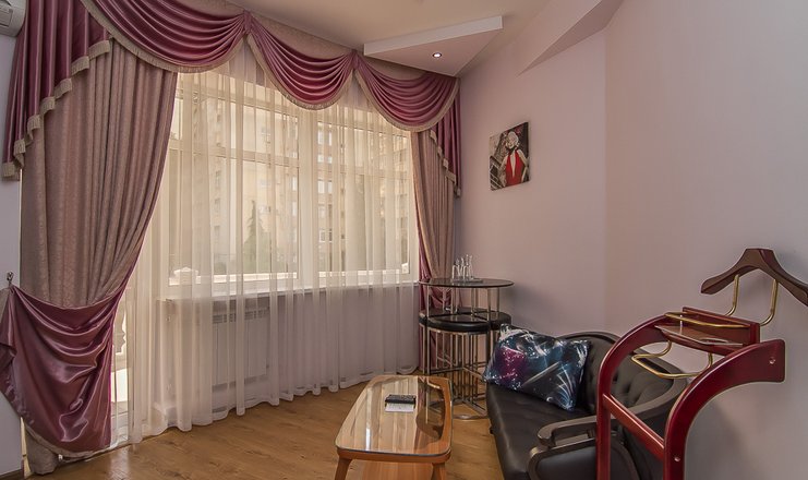 В номере: диван, зеркало, кровати односпальные /одна двуспальная кровать, прикроватные тумбочки, столик журнальный, шкаф, кондиционер, набор посуды, сейф, телевизор, холодильник, душевая кабина, тапочки, туалетные принадлежности, фен, халат;