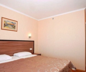 -в номере: зеркало, кровать полутороспальная, прикроватная тумбочка, стол, стул, шкаф, кондиционер, телевизор, холодильник;