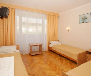 -в номере: вешалка, зеркало, кровать односпальная, прикроватная тумбочка, стол, стул, шкаф, кондиционер, телевизор, холодильник;
