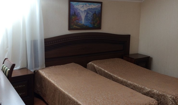 -в номере: вешалка, зеркало, кресло, кровати односпальные, прикроватные тумбочки, стол, стул, шкаф, мини-холодильник, сплит-система, телевизор;