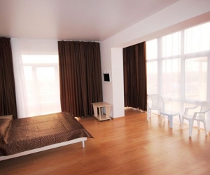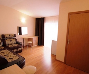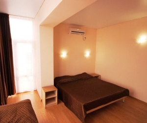 -в номере: вешалка, диван раскладной, зеркало, кровать двуспальная, прикроватные тумбочки, столик туалетный, шкаф, сплит-система, телевизор ЖК, холодильник, чайный набор посуды, электрочайник;