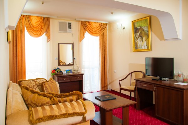 Площадь номера: 37 кв. мВ номере: телевизор, кондиционер, душ, фен, балкон, мини-бар, туалет. Доп. место - диван-кроватьВид на горыНомера на 3-4 этаже