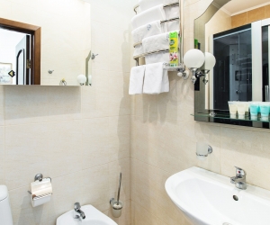 В номере: двуспальная кровать, кресло, ТВ (спутниковое), кондиционер, холодильник, телефон, утюг, электрочайник, туалет, умывальник, фен, душевая кабина