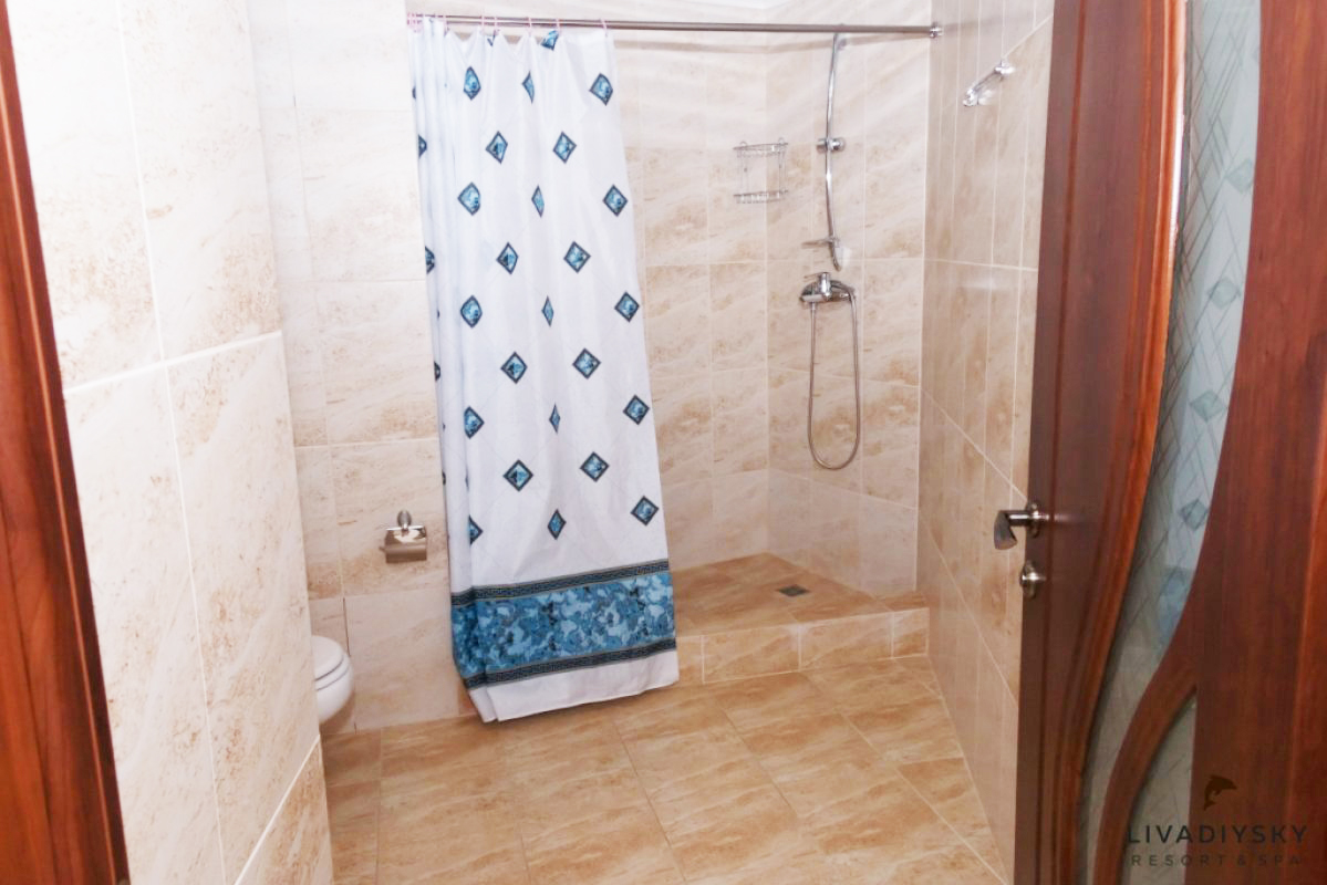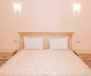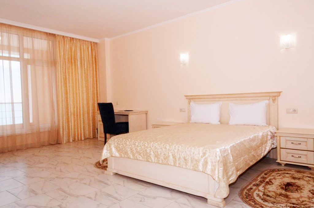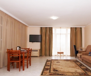 В номере: двуспальная кровать/2 односпальные кровати, прикроватные тумбы, 2 раскладных кресла, шкаф, пуфик, журнальный столик, напольные вешалки, стул, сейф, кондиционер, телевизор, холодильник, электрочайник, набор посуды, сушилка для белья, фен (по запросу), полотенца, туалетные принадлежности, тапочки, Wi-Fi бесплатно