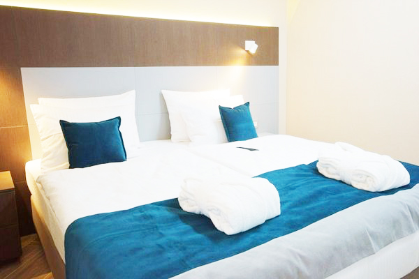 В номере: телевизор, кондиционер, душ, фен, халаты, холодильник, банные принадлежности, электрочайник, сейф, 2-спальная кровать, туалет