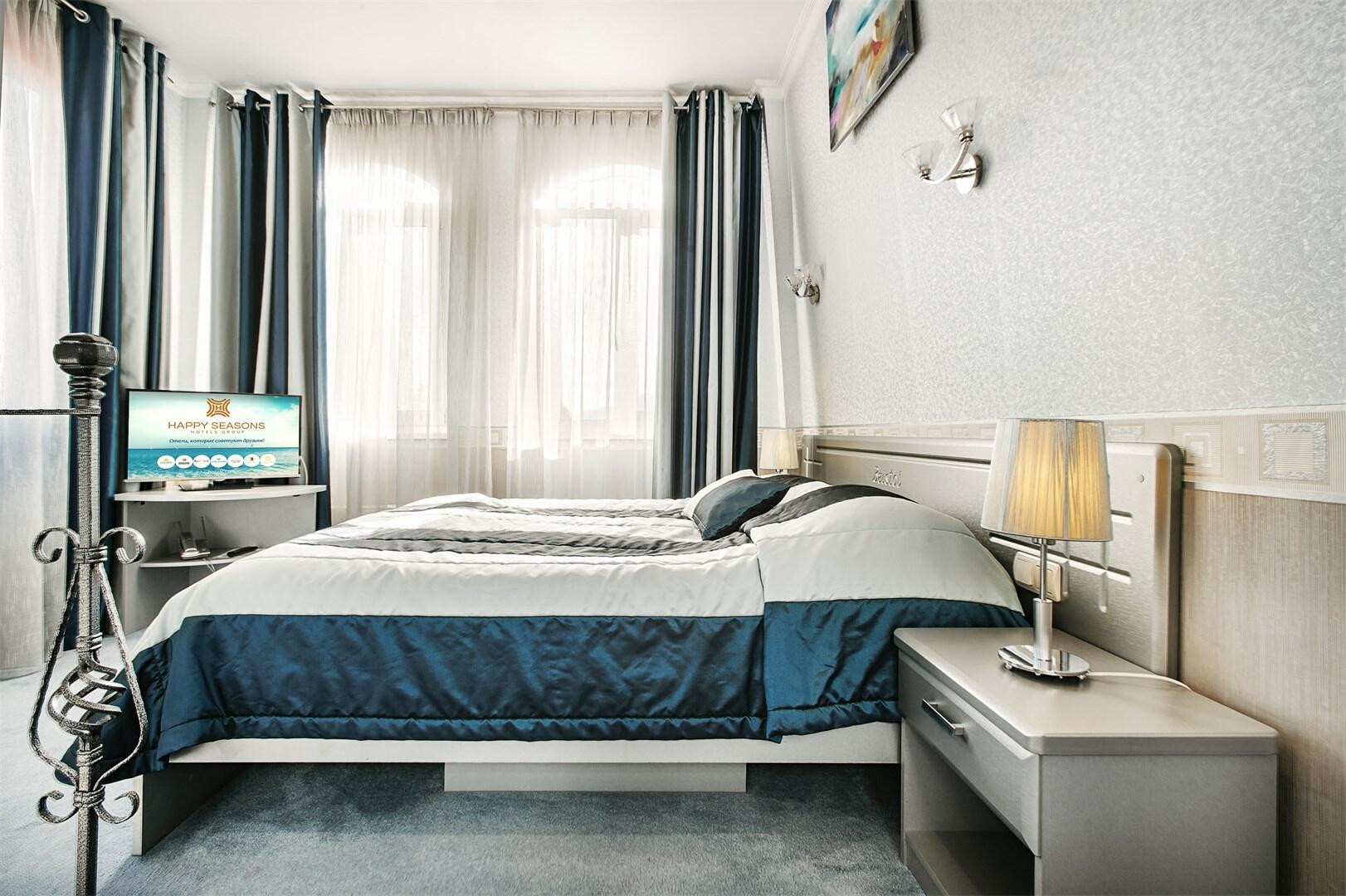 В номере: телевизор, кондиционер, душ, фен, холодильник, балкон, сейф, телефон, 1-спальные/ 2-спальная кровать, туалет