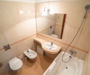 В номере: wi-fi, ванна, махровые халаты, туалет, LCD телевизор, кондиционер, холодильник, двуспальная кровать, большая лоджия 17 кв.м. (стол, стулья из красного дерева)