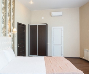 -в номере: вешалка, кресло-кровать, кровать двуспальная, обувная полка, прикроватные тумбочки, стулья, шкаф-купе, кондиционер, сейф, телевизор, холодильник, чайный набор посуды;
