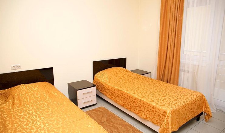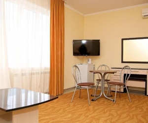 -в номере: вешалка, диван, зеркало, кровать двуспальная, прикроватные тумбочки, стол, стулья, шкаф, набор посуды, сплит-система, телевизор, холодильник, электрочайник;